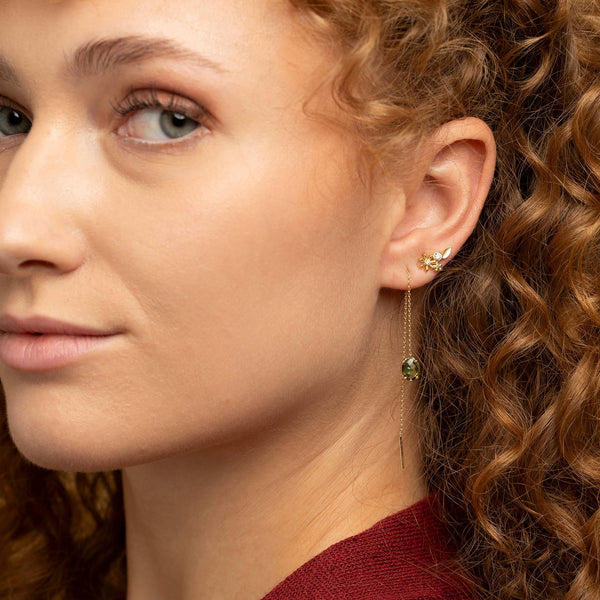 Gefertigt aus edlem 18kt Gold und besetzt mit weißen und grünen Brillanten, funkeln die „Wiesenblumen“ mit ihrer Trägerin um die Wette – ein stilvoller Begleiter für jeden Tag und jede Gelegenheit.